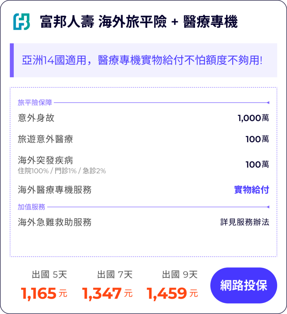 - 擔心嚴重傷病需專機返台 ➜ 首選富邦、安達、南山! 海外醫療/急難救助方案推薦