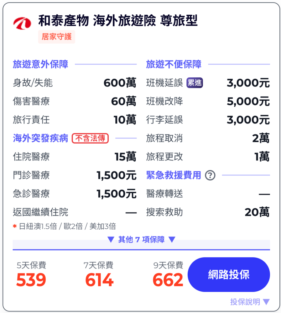 和泰產物旅平險多少錢?